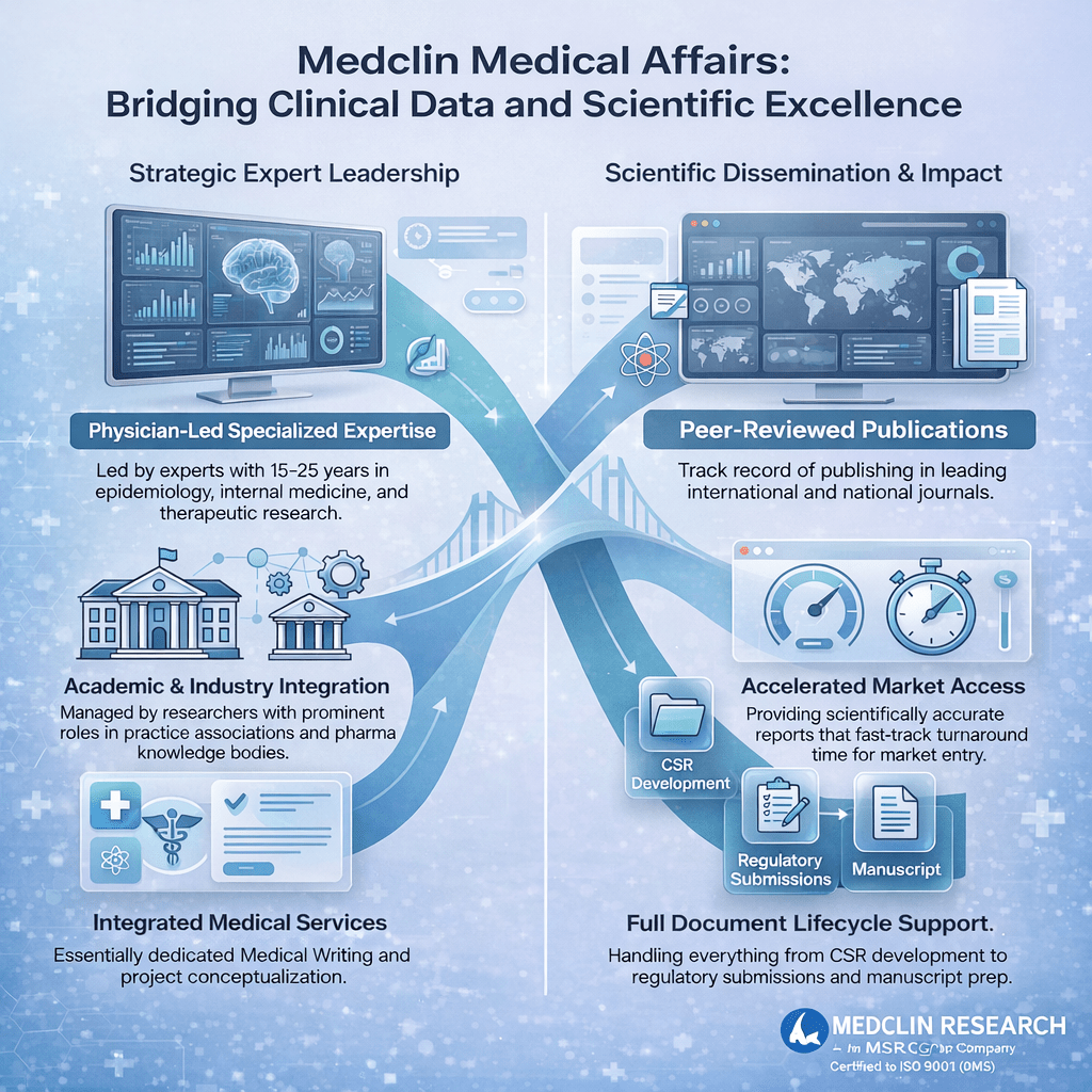 Medical Affairs activities at Medclin are led by academicians, and scientific experts with extensive experience in epidemiology, pediatrics, internal medicine, and clinical research.